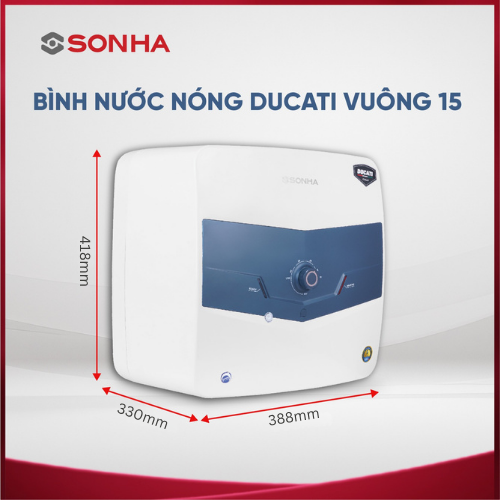 Bình nước nóng Sơn Hà DUCATI vuông 15L sở hữu thiết kế tinh tế và sang trọng cho sản phẩm và tiện nghi cho cuộc sống hiện đại. Các đặc điểm nổi bật của sản phẩm Bình nước nóng DUCATI : An toàn vượt trội, vật liệu siêu bền, thiết kế hiện đại.