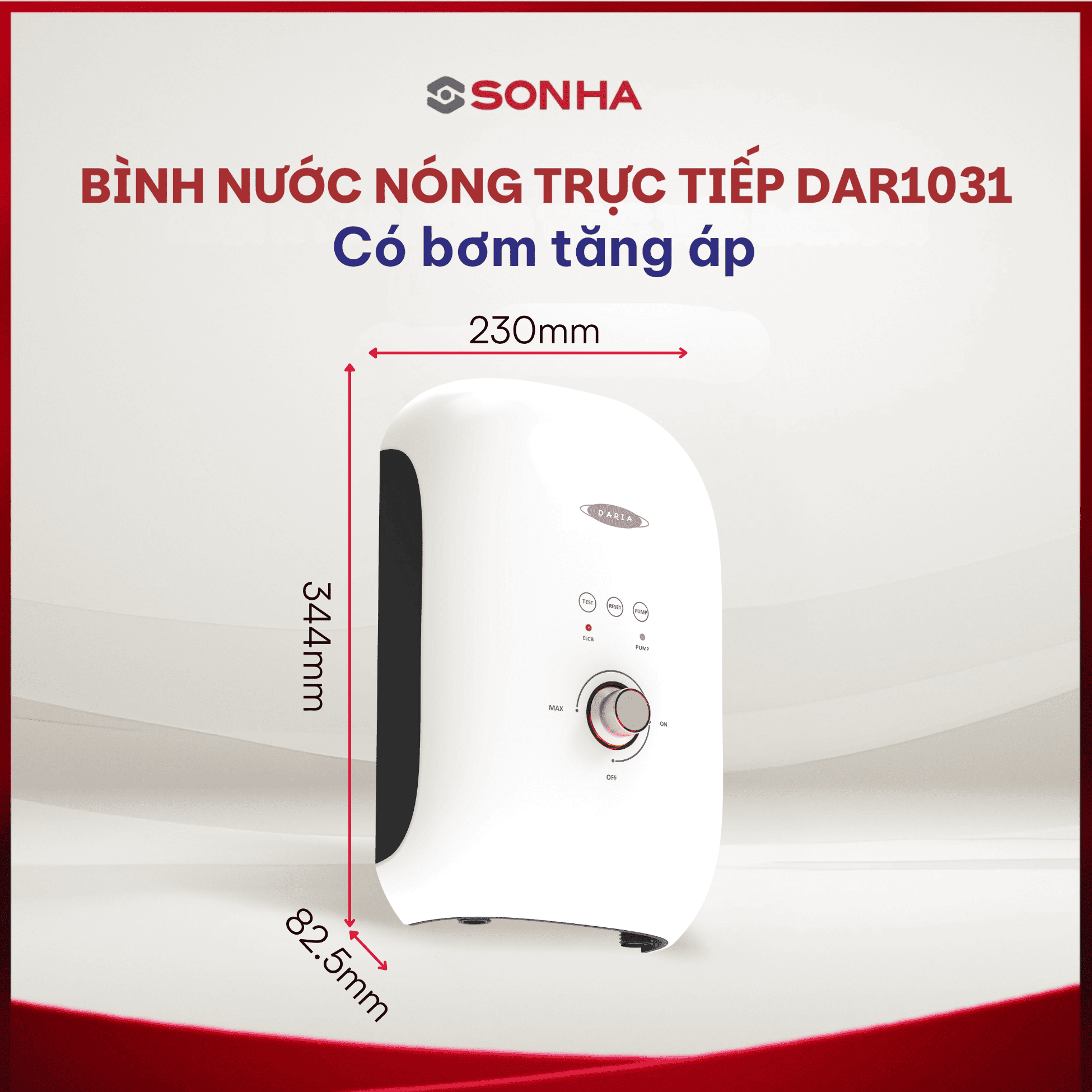 Bình nước nóng trực tiếp Sơn Hà Daria 1041 không có bơm tăng áp phù hợp với đa số mọi gia đình, kể cả nhưng gia đình có áp lực nước yếu.