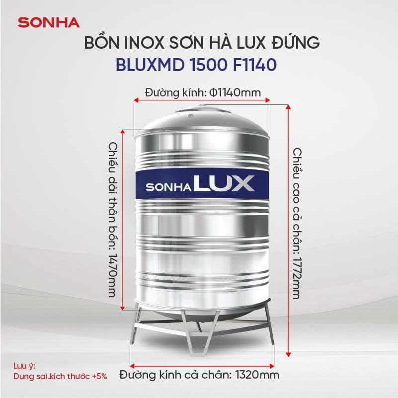 Được sản xuất bằng vật liệu inox SUS304 cao cấp trên dây chuyền công nghệ hiện đại của Nhật Bản đạt tiêu chuẩn Quốc tế ISO 9001-2008, Bồn Inox Sơn Hà LUX đứng 1500L có thiết kế tối ưu phù hợp với nhiều loại hình kiến trúc nhà ở, độ cứng và độ bền cực cao.