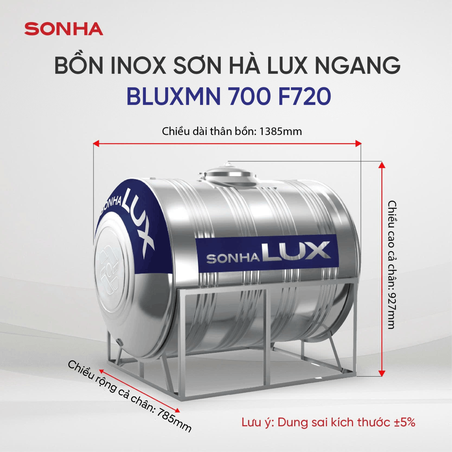 Được sản xuất bằng vật liệu inox SUS304 cao cấp trên dây chuyền công nghệ hiện đại của Nhật Bản đạt tiêu chuẩn Quốc tế ISO 9001-2008, Bồn Inox Sơn Hà LUX ngang 700L có thiết kế tối ưu phù hợp với nhiều loại hình kiến trúc nhà ở, độ cứng và độ bền cực cao.