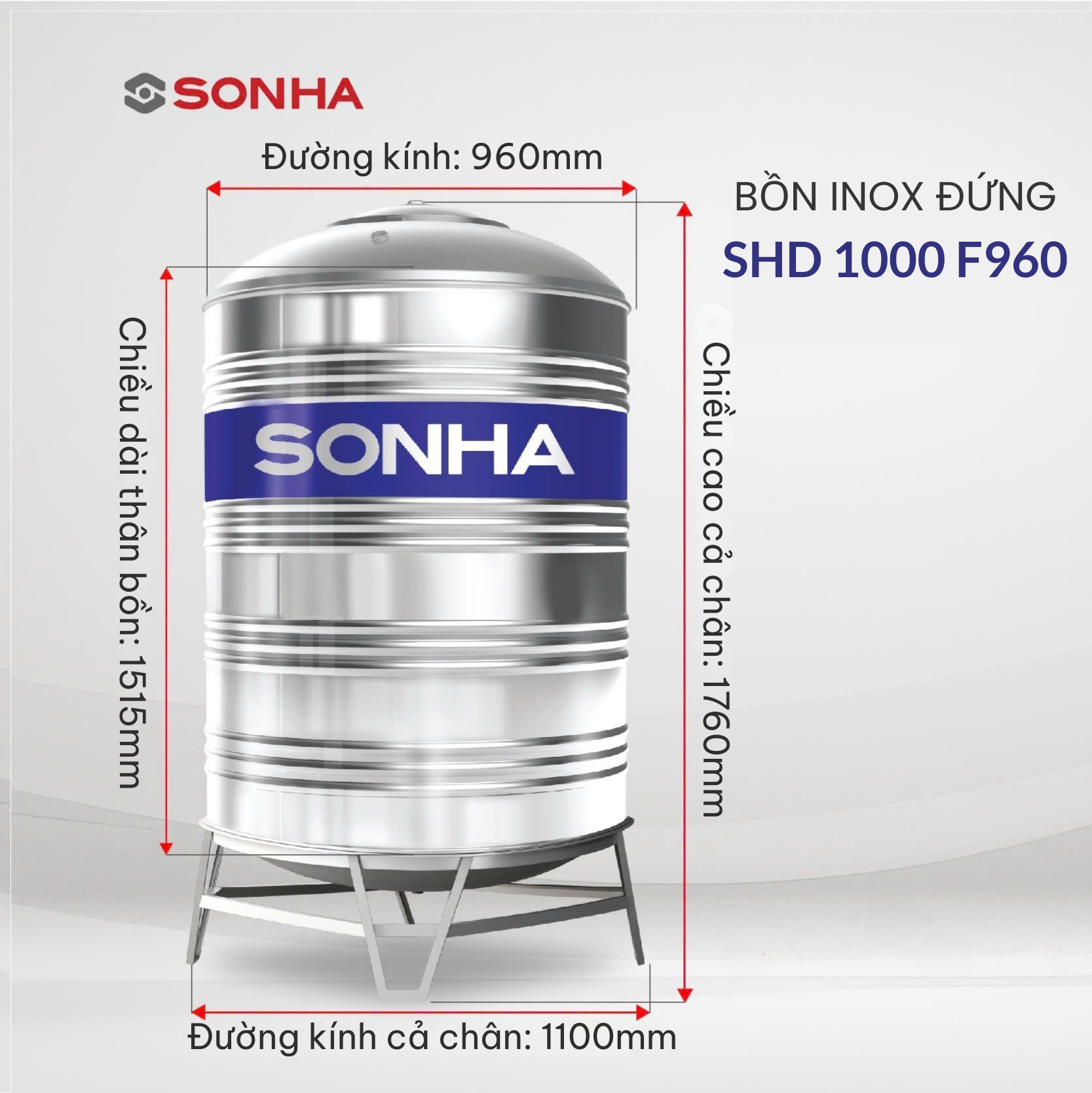 Được sản xuất bằng vật liệu inox SUS304 cao cấp trên dây chuyền công nghệ hiện đại của Nhật Bản đạt tiêu chuẩn Quốc tế ISO 9001-2008, Bồn inox Sơn Hà mẫu đứng (SHD) 1.000 (F0960) có thiết kế tối ưu phù hợp với nhiều loại hình kiến trúc nhà ở, độ cứng và độ bền cực cao.
