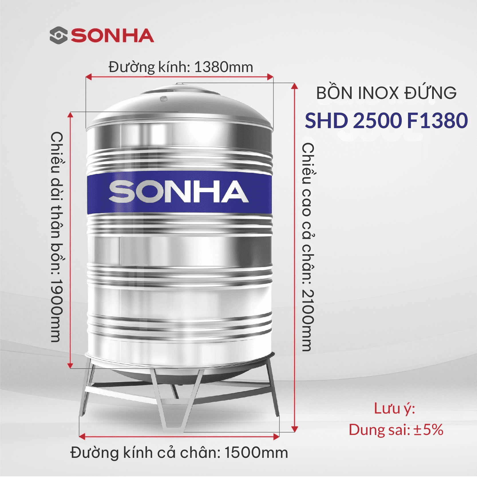 Được sản xuất bằng vật liệu inox SUS304 cao cấp trên dây chuyền công nghệ hiện đại của Nhật Bản đạt tiêu chuẩn Quốc tế ISO 9001-2008, Bồn inox Sơn Hà mẫu đứng (SHD) 2.500 (F1380) có thiết kế tối ưu phù hợp với nhiều loại hình kiến trúc nhà ở, độ cứng và độ bền cực cao.
