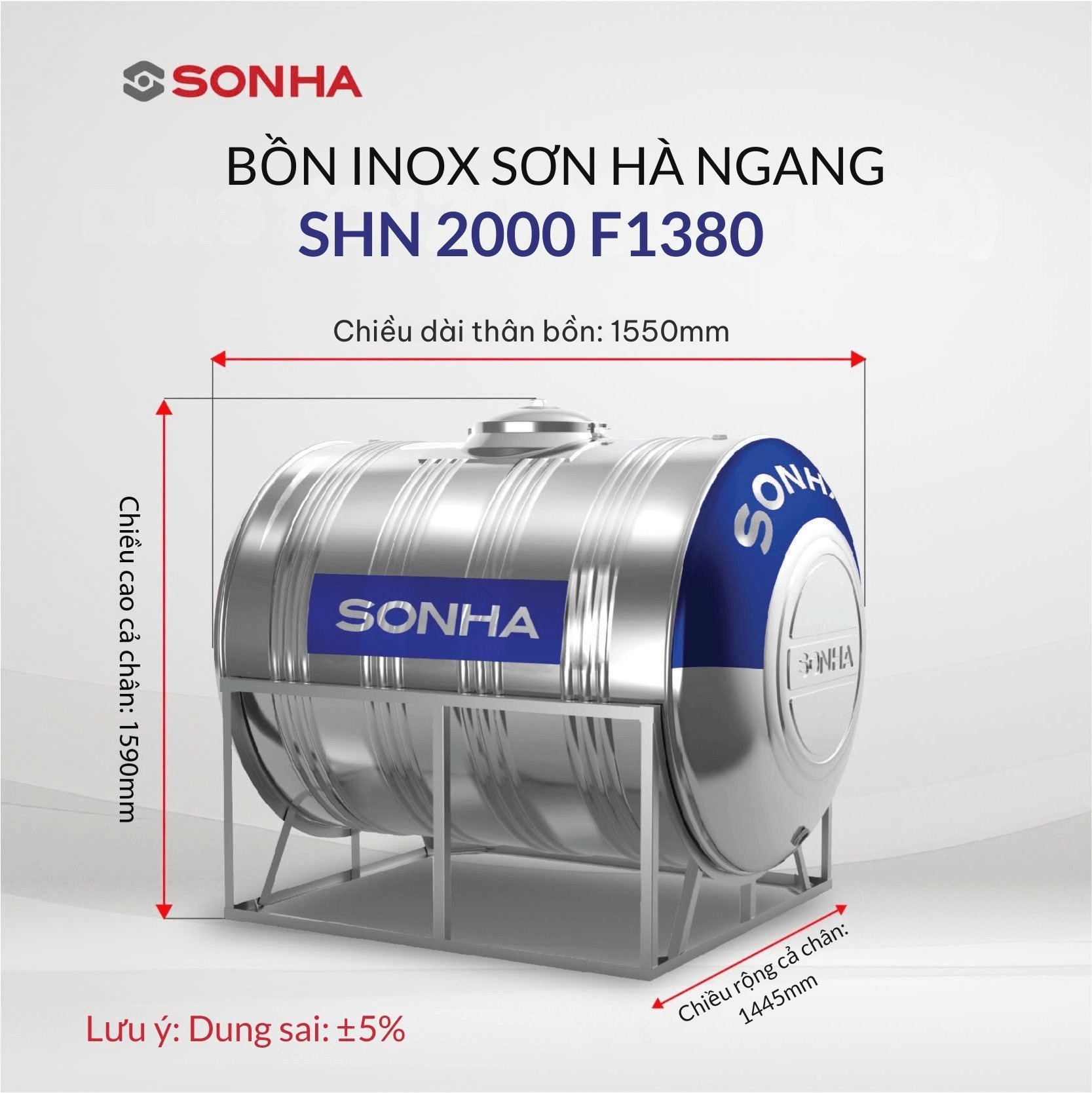 Được sản xuất bằng vật liệu inox SUS304 cao cấp trên dây chuyền công nghệ hiện đại của Nhật Bản đạt tiêu chuẩn Quốc tế ISO 9001-2008, Bồn inox Sơn Hà mẫu ngang (SHN) 2.000 (F1380) có thiết kế tối ưu phù hợp với nhiều loại hình kiến trúc nhà ở, độ cứng và độ bền cực cao.