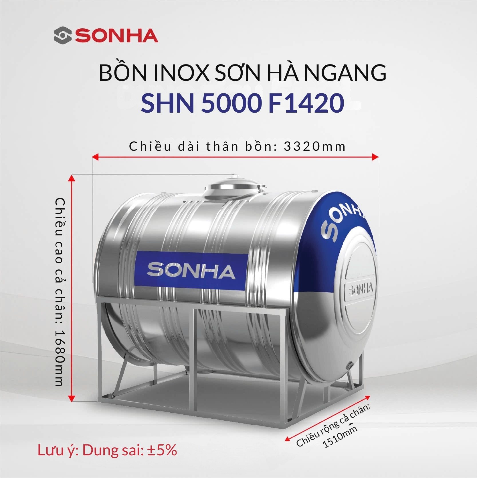 Được sản xuất bằng vật liệu inox SUS304 cao cấp trên dây chuyền công nghệ hiện đại của Nhật Bản đạt tiêu chuẩn Quốc tế ISO 9001-2008, Bồn inox Sơn Hà mẫu ngang (SHN) 5.000 (F1420) có thiết kế tối ưu phù hợp với nhiều loại hình kiến trúc nhà ở, độ cứng và độ bền cực cao.