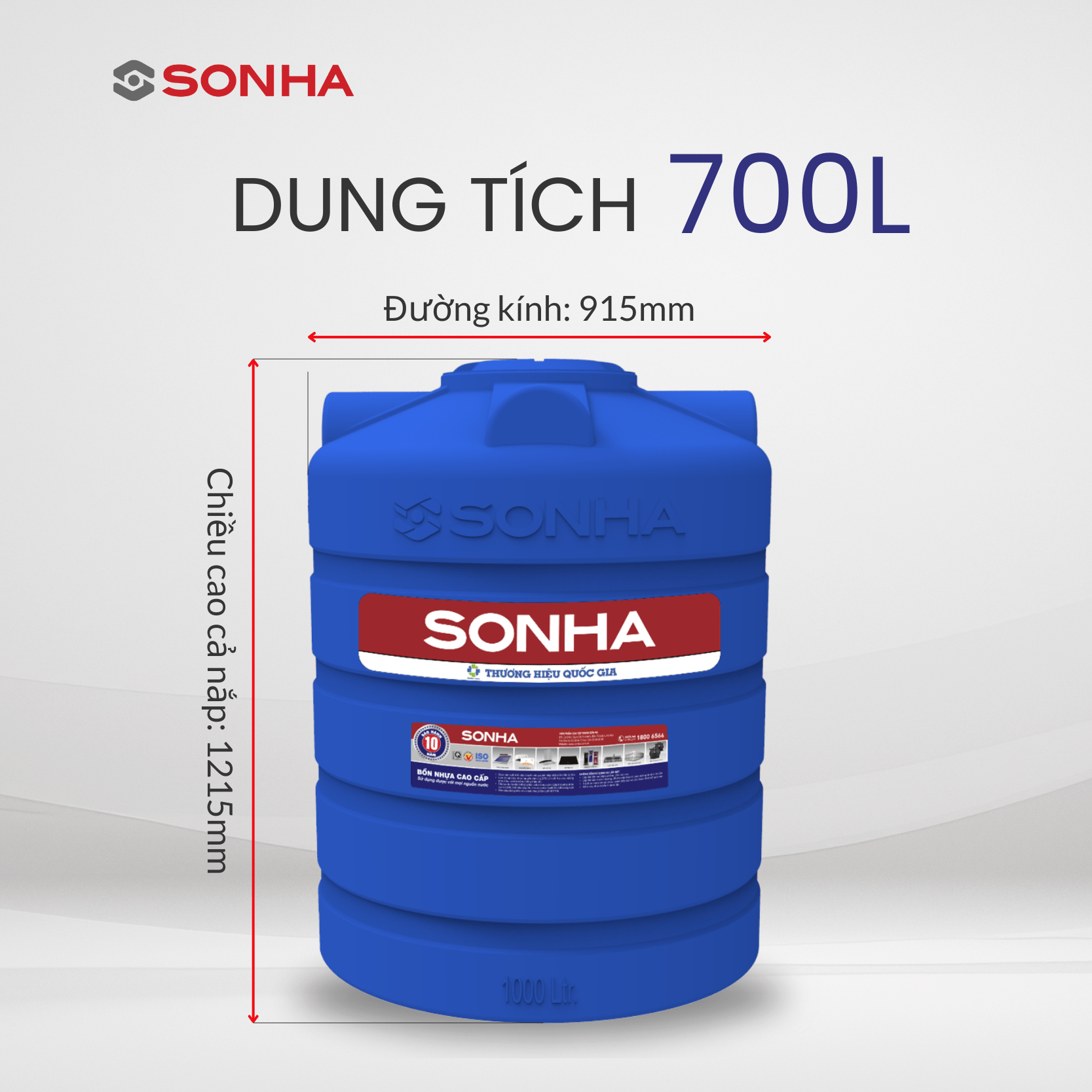 Sản xuất 100% từ bột nhựa nguyên sinh thân thiện với môi trường trên dây chuyền công nghệ mới nhất của Australia, Bồn nhựa Sơn Hà mẫu đứng (BNMD) 700L đạt tiêu chuẩn về độ bền, độ cứng, chịu được lực va đập mạnh, thách thức mọi nguồn nước và điều kiện thời tiết.