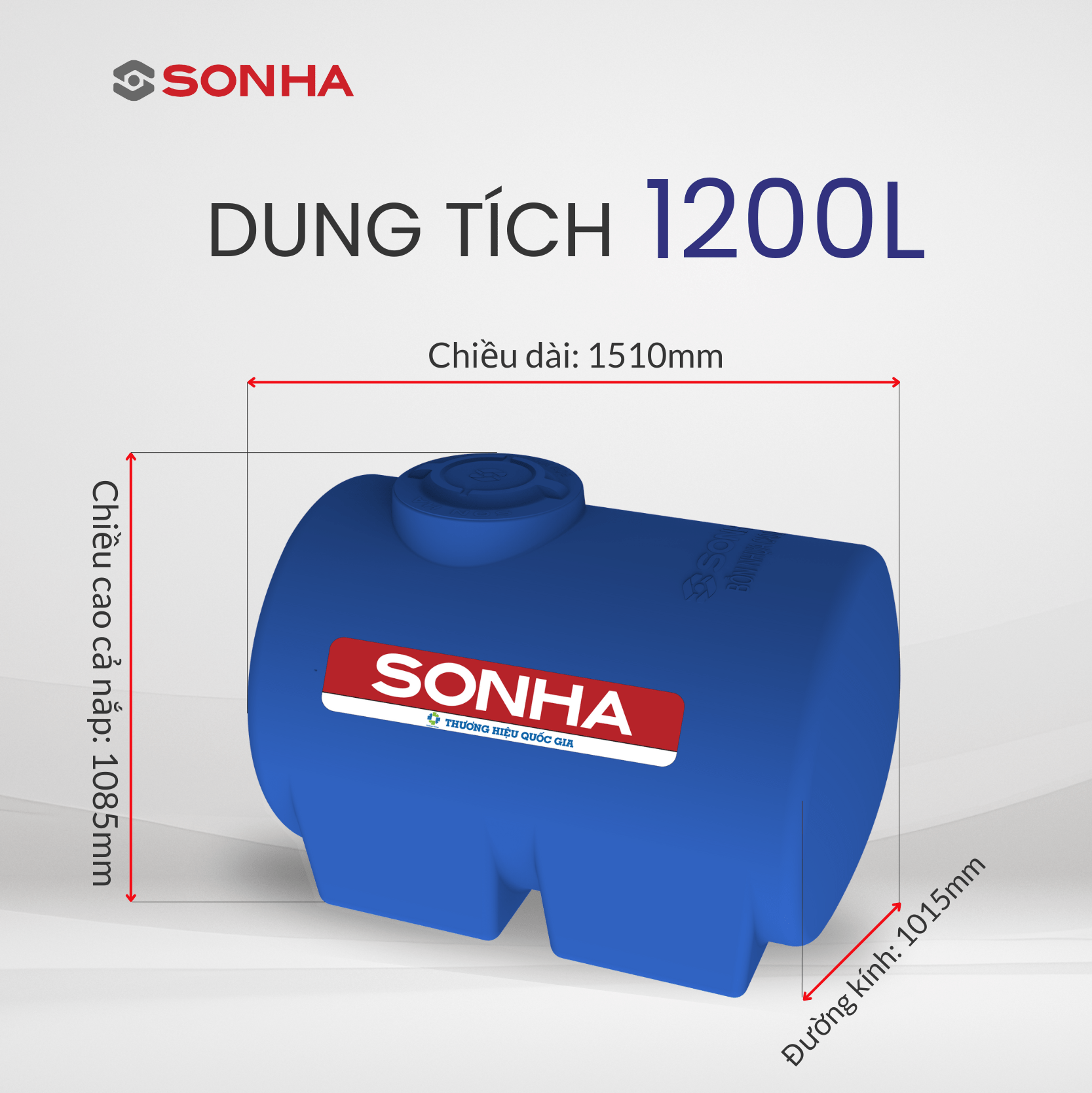 Sản xuất 100% từ bột nhựa nguyên sinh thân thiện với môi trường trên dây chuyền công nghệ mới nhất của Australia, Bồn nhựa Sơn Hà mẫu ngang (BNMN) 1.200L đạt tiêu chuẩn về độ bền, độ cứng, chịu được lực va đập mạnh, thách thức mọi nguồn nước và điều kiện thời tiết.