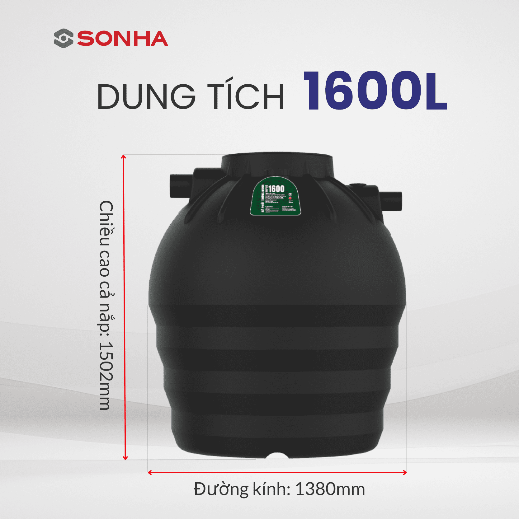 Bồn tự hoại Septic Sơn Hà đứng 1600 lít dùng để chứa chất thải và nước sử dụng vệ sinh hằng ngày như (nhà vệ sinh, bồn rửa, máy giặt, bồn cầu... ) sẽ đi theo đường dẫn vào bồn chứa tự hoại trước khi thải ra môi trường mà không gây ô nhiễm môi trường không gây tắc nghẽn đường ống vệ sinh.