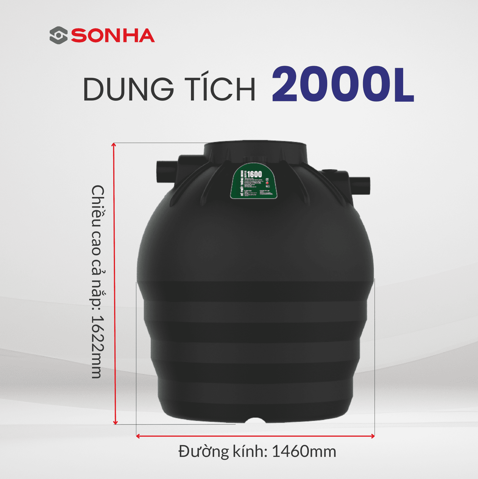 Bồn tự hoại Septic Sơn Hà đứng 2000 lít dùng để chứa chất thải và nước sử dụng vệ sinh hằng ngày như (nhà vệ sinh, bồn rửa, máy giặt, bồn cầu... ) sẽ đi theo đường dẫn vào bồn chứa tự hoại mà không gây ô nhiễm môi trường không gây tắc nghẽn đường ống vệ sinh.