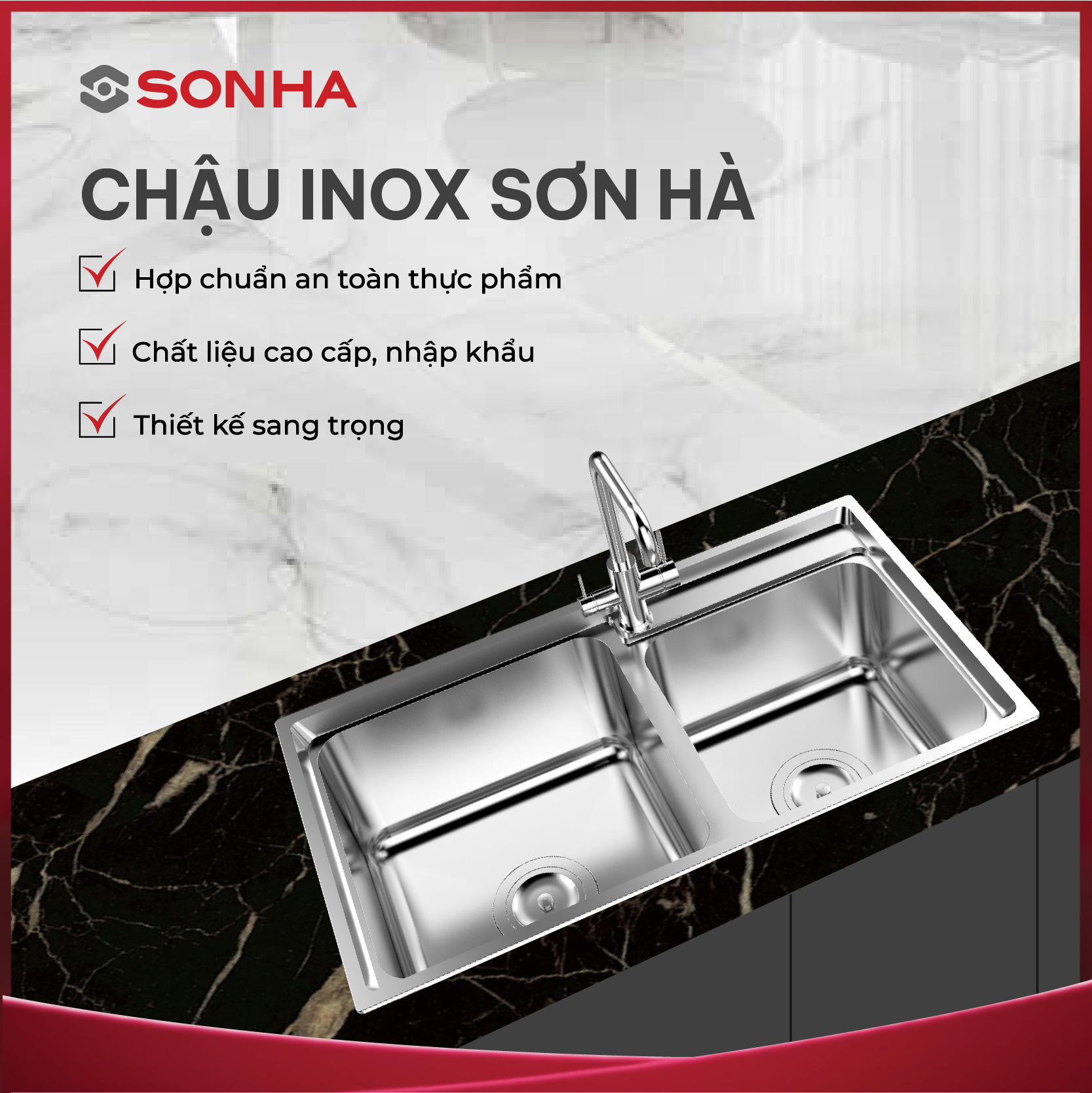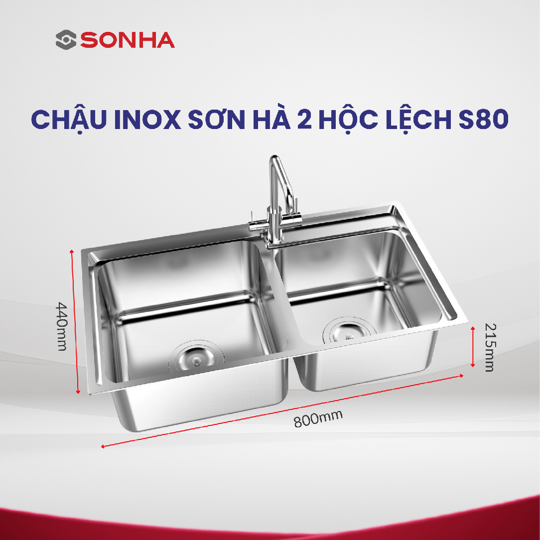 Sản xuất từ chất liệu inox nhập khẩu siêu bền S80 trên dây chuyền công nghệ ép liền khối hiện đại nhất Việt Nam, Chậu rửa bát cao cấp 2 hộc lệch Sơn Hà S80 tối ưu hóa không gian sử dụng, thân thiện với môi trường, là trợ thủ đắc lực cho công việc bếp núc của mọi gia đình.