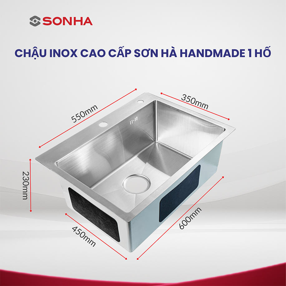 Sản xuất từ chất liệu inox nhập khẩu siêu bền SUS304 trên dây chuyền công nghệ ép liền khối hiện đại nhất Việt Nam, Chậu inox cao cấp Sơn Hà Handmade 1 hố tối ưu hóa không gian sử dụng, thân thiện với môi trường, là trợ thủ đắc lực cho công việc bếp núc của mọi gia đình