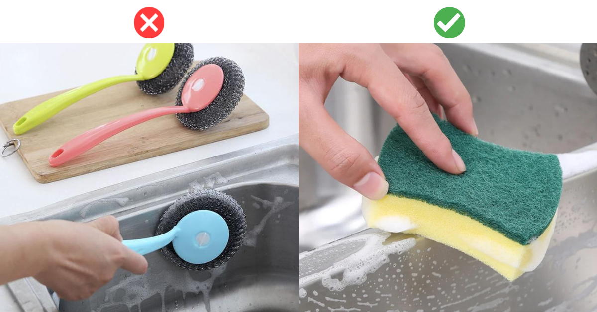 Hạn chế sử dụng các loại cọ rửa kim loại thay vào đó sẽ sử dụng miếng bọt biển