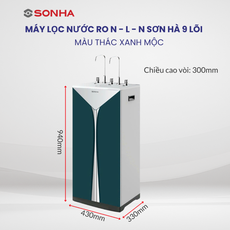 Máy lọc nước RO Sơn Hà 3 chức năng N - L - N 9 lõi thác xanh mộc được sản xuất trên dây chuyền công nghệ hiện đại, tuân thủ nghiêm ngặt các tiêu chuẩn quốc tế về thiết bị an toàn nguồn nước.