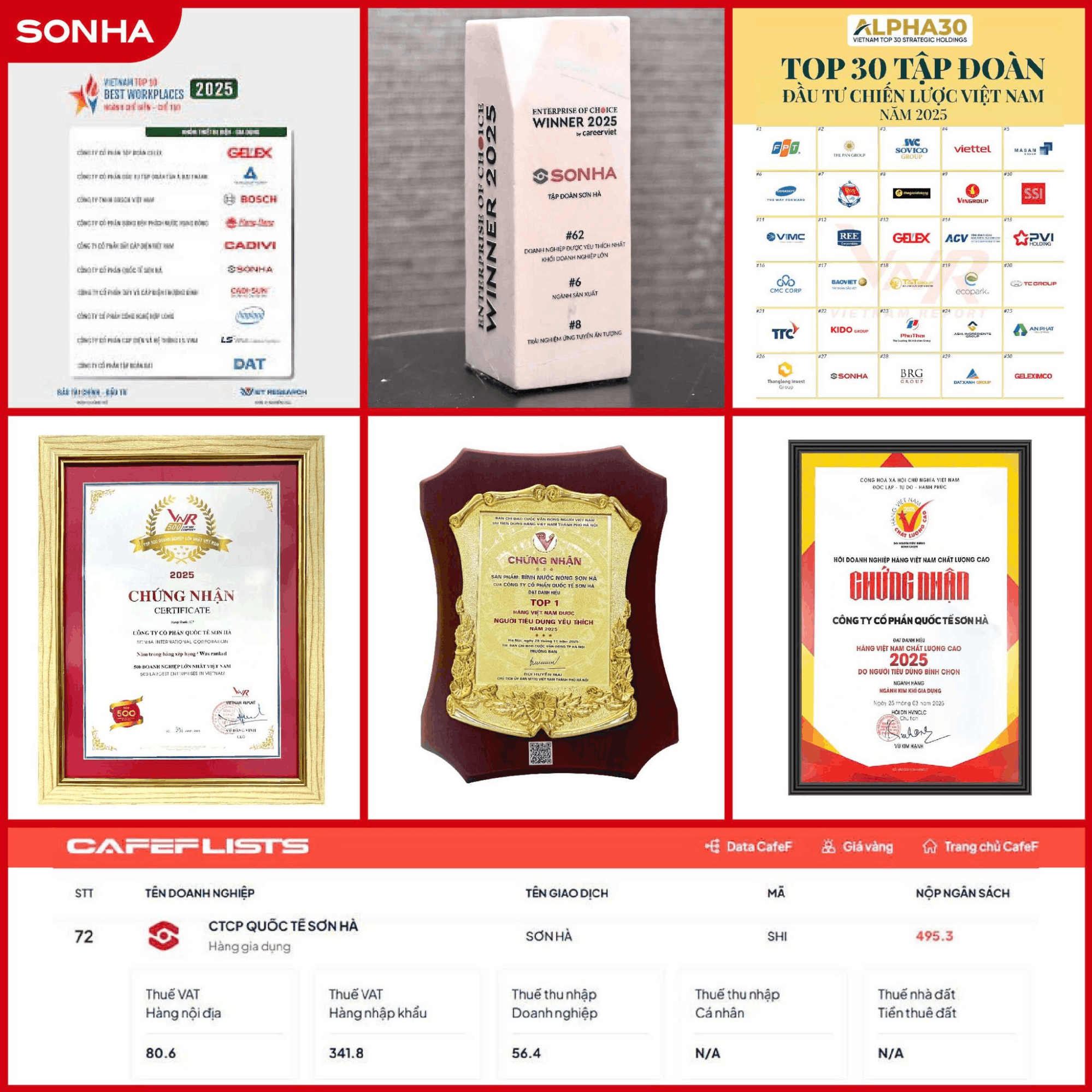 TẬP ĐOÀN SƠN HÀ GHI DẤU VỚI NHIỀU GIẢI THƯỞNG UY TÍN TRONG NĂM 2025
